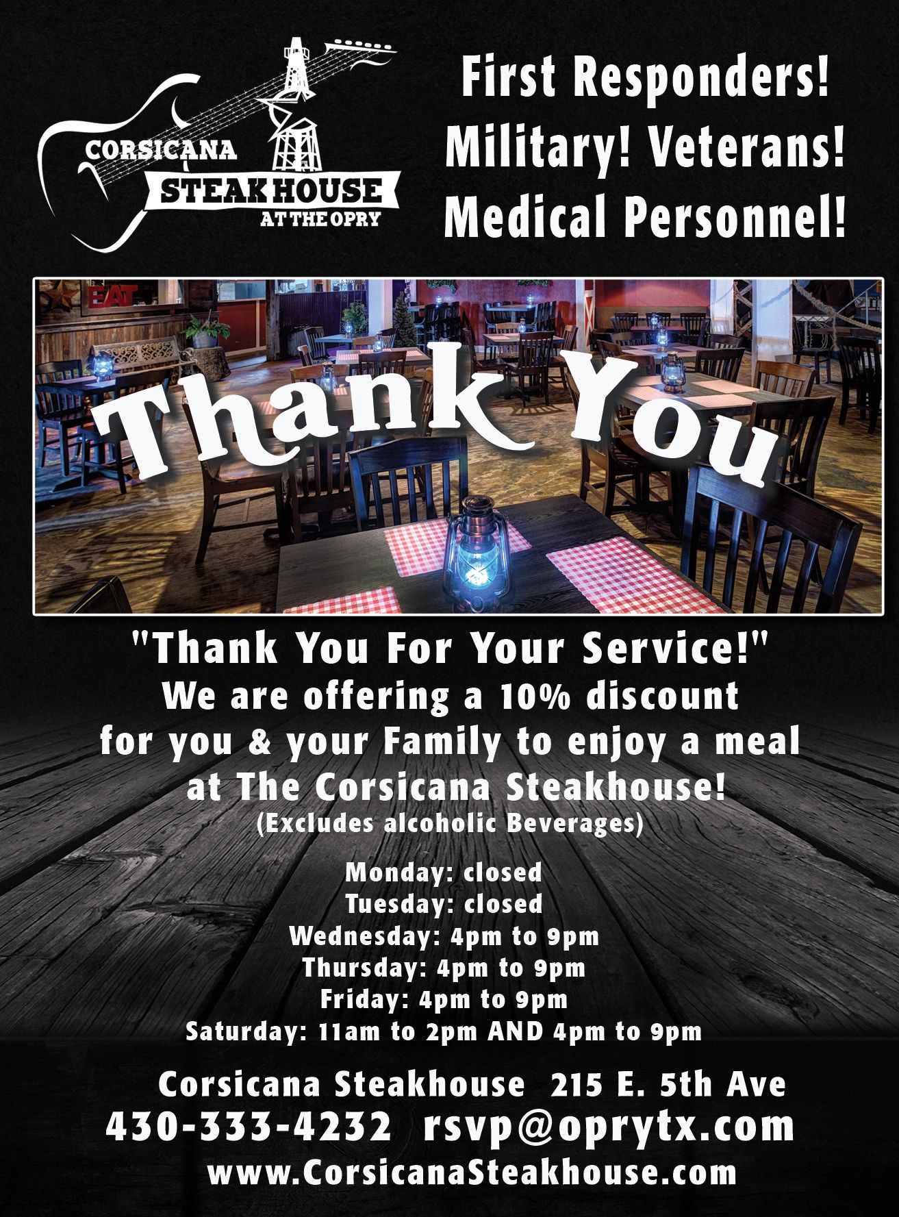 The Corsicana Steakhouse cordially invites you to experience fine dining Texas style.
